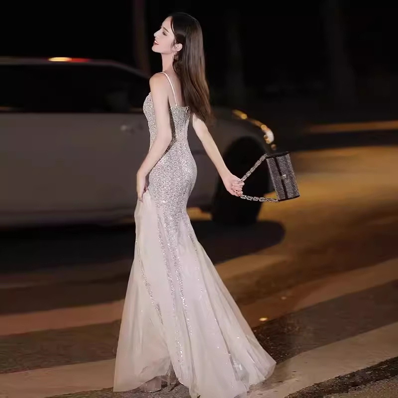 Mermaid Straps Sequin Party Dress Long Prom Dress HZ1022